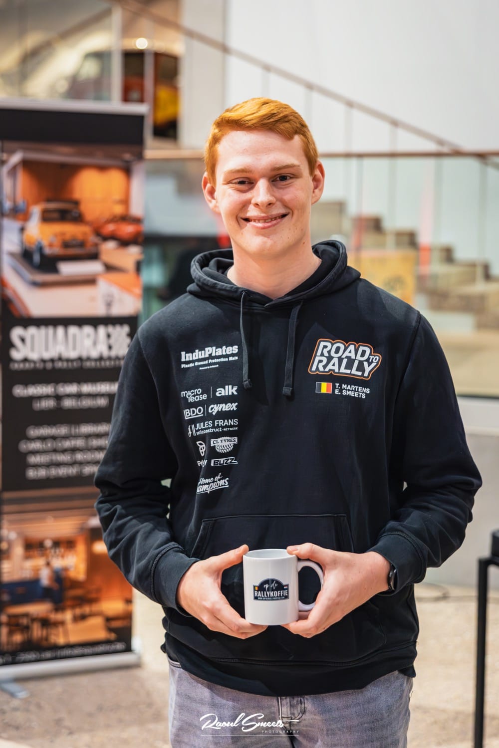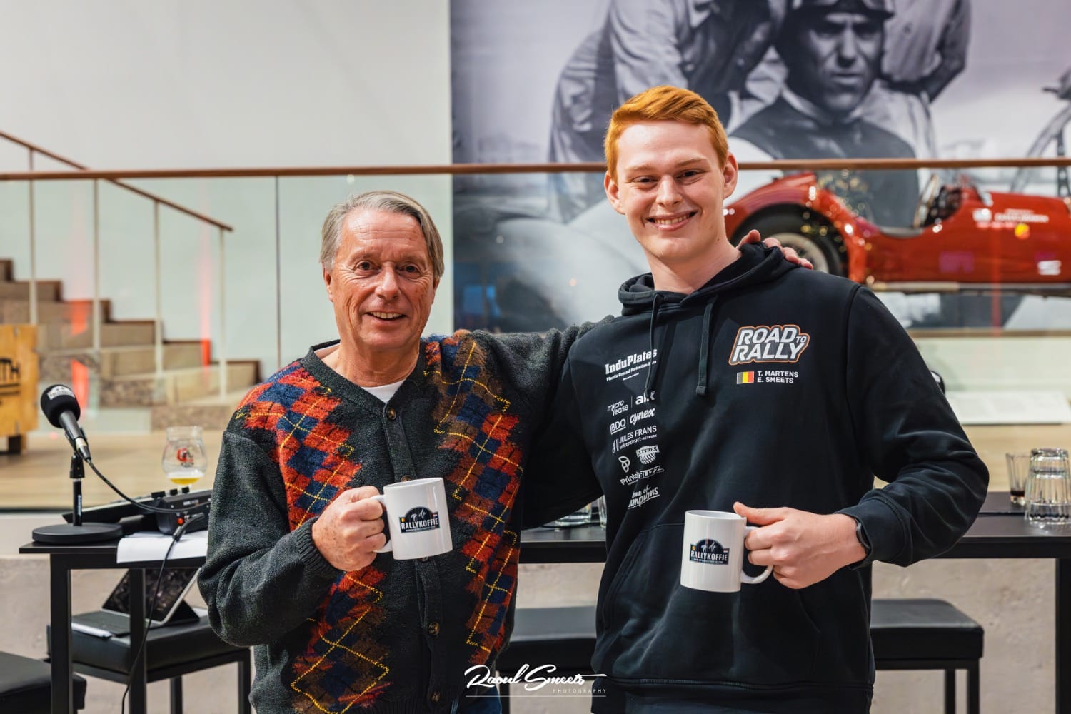 Als voorproefje kwam Thomas Martens Op de rallykoffie bij de live opname in het Squadra museum. Thomas – ook gekend als The Ginger One – is de jongste praatgast ooit, een titel die hij nog wel een tijdje zal kunnen houden. En hij wil nog meer titels als “jongste” binnenhalen. Zo begon hij op 4-jarige leeftijd met karting en reed hij zijn eerste rallysprint op zijn 13de met Robin Buysmans als co. In de Spa Rally 2025 behaalde hij als jongste deelnemer ooit een eerste scratch in het Belgian Rally Championship. Thomas vertelt over zijn eerste rallyjaren in de Baltische staten, de enige plaats in de wereld waar je zo vroeg rally mag rijden, als de co-piloot tenminste de verbindingen rijdt. In het Fins kampioenschap 2024 werd iedere rally moeilijker en moeilijker. Dat was dan ook een goede voorbereiding voor het Junior WRC dat hij dit jaar reed in een Fiesta Rally3. De finish van de openingsproef in zijn eerste JWRC-wedstrijd gingen de wereld rond: toen hij achterstevoren over de flying finish sprong. Espresso-gewijs wordt er nog even teruggeblikt op zijn seizoen 2025 dat zo pas eindigde in Spa met een mooie 5de plaats algemeen. Naar 2026 staat nog niets 100% vast maar mikt Thomas op een programma waarbij – hopelijk – een viertal WRC wedstrijden in een Rally3 gecombineerd zullen worden met een zestal BRC-wedstrijden in de Rally2 van i4Race / PH Sport. Wordt zeker vervolgd, dat was ook duidelijk bij Dirk Van Rompuy die geboeid zat te luisteren naar de youngster die zijn ambitie niet onder stoelen of banken steekt.