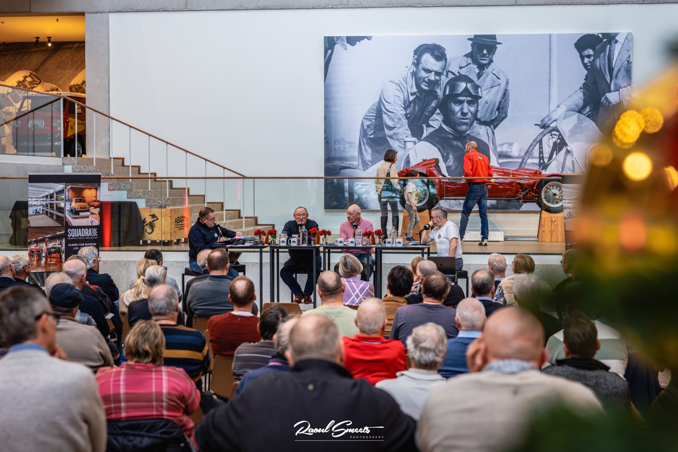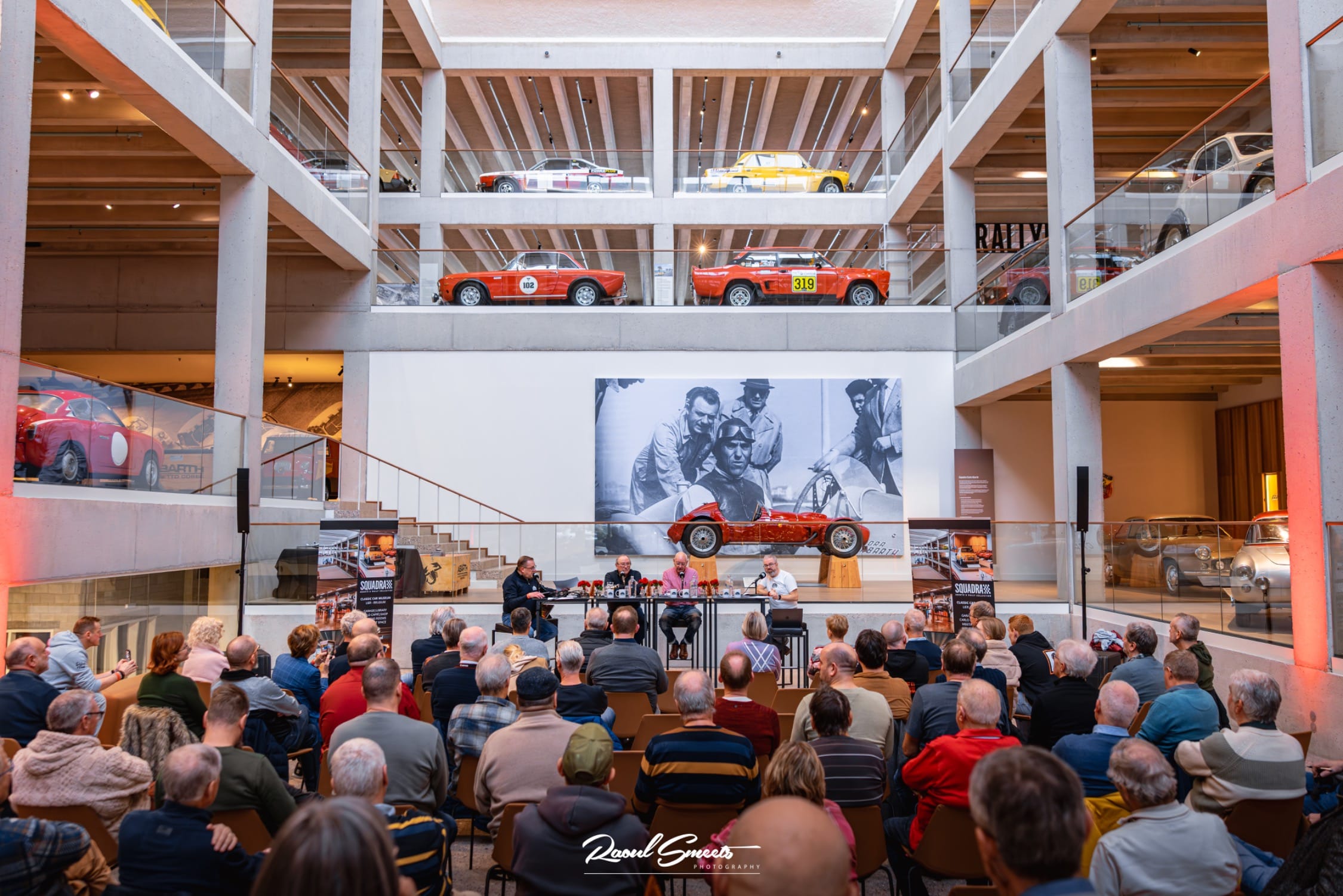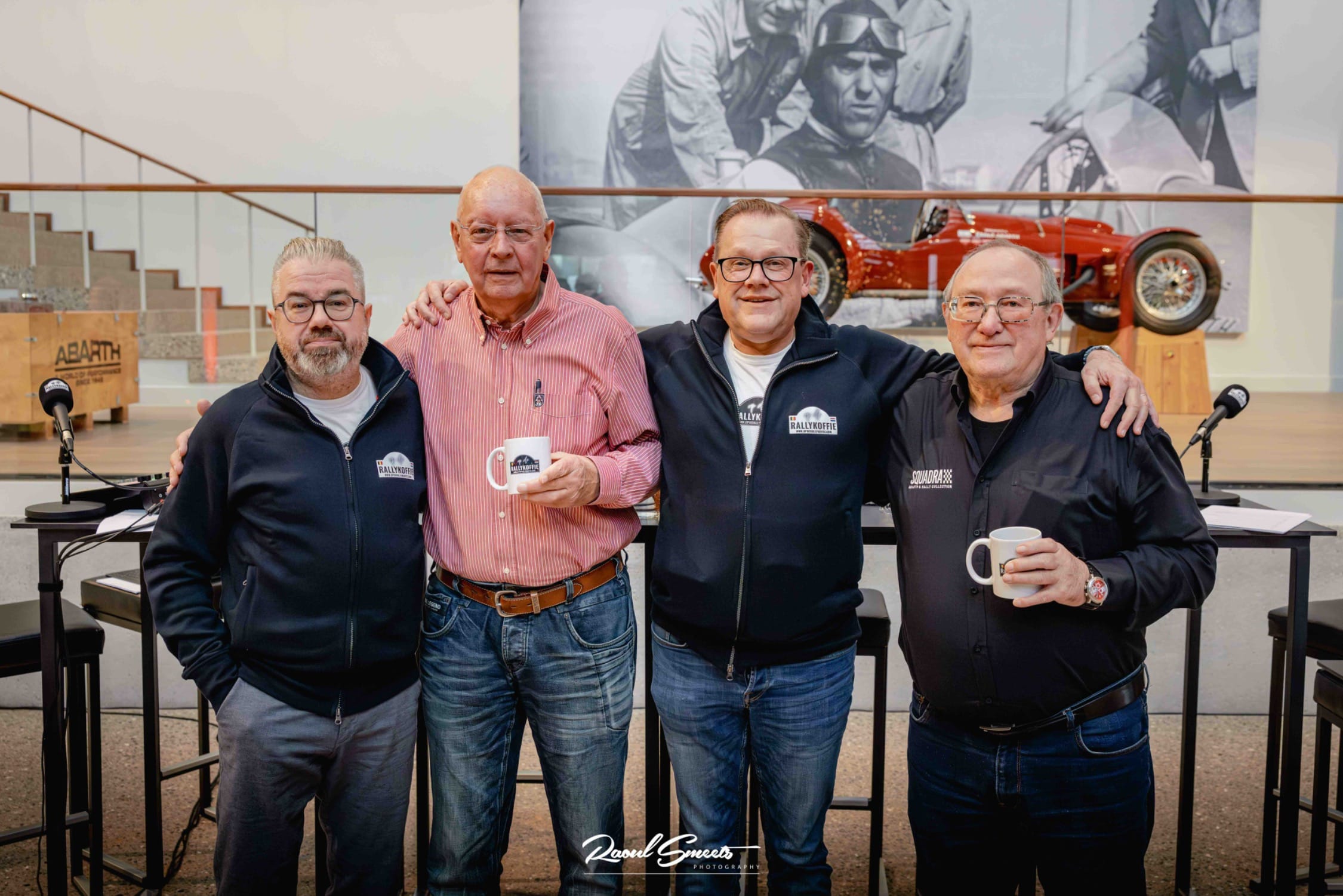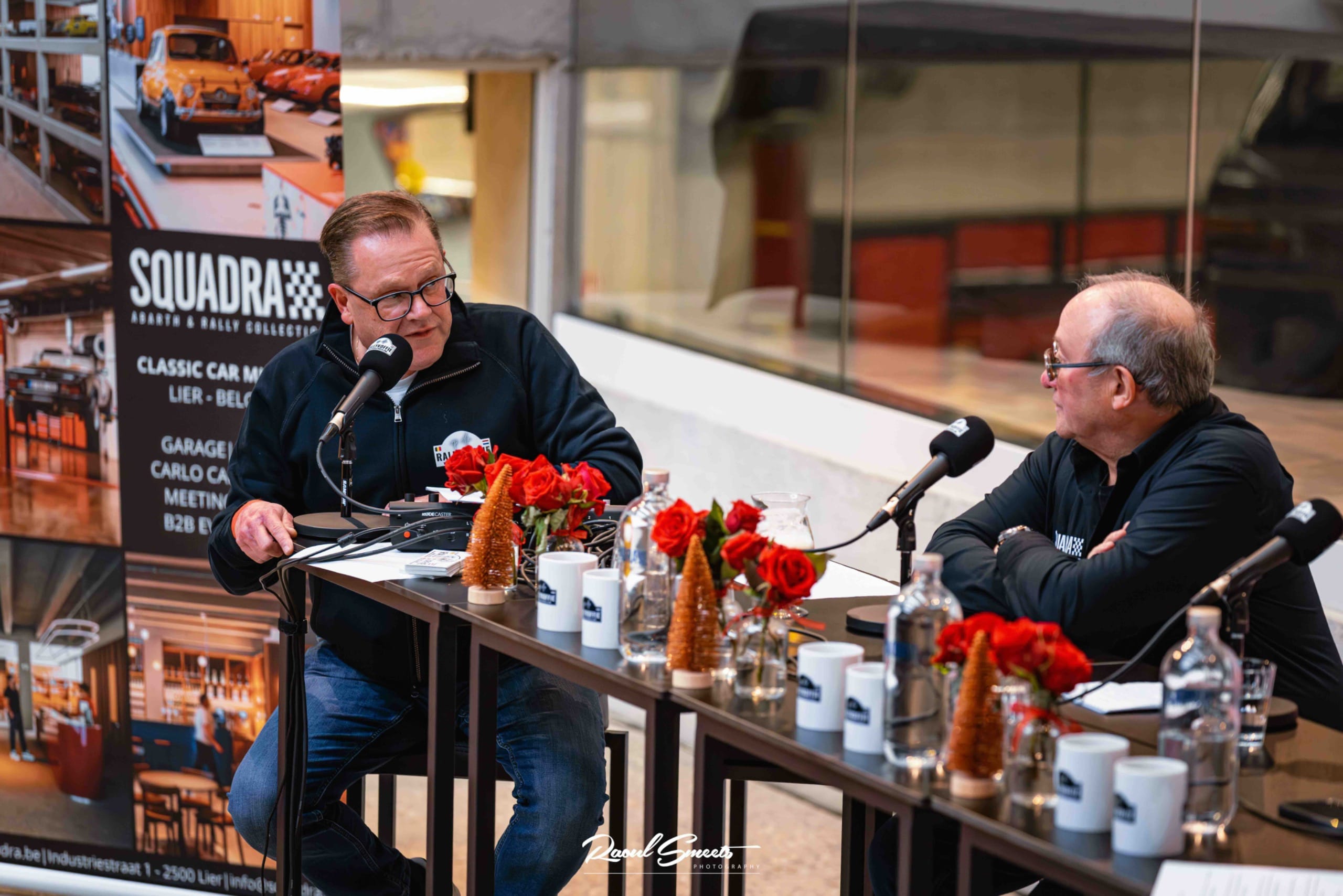 Voor de derde live podcast opname met publiek waren we op zondag 14 december 2025 te gast in het Squadra Abarth & Rally collection museum te Lier. Het was dan ook redelijk logisch dat onze eerste praatgast de gastheer van dit iconisch museum is: Guy Moerenhout, bijgestaan door één van zijn eerste co-piloten Eddy Nys als tweede spreker.